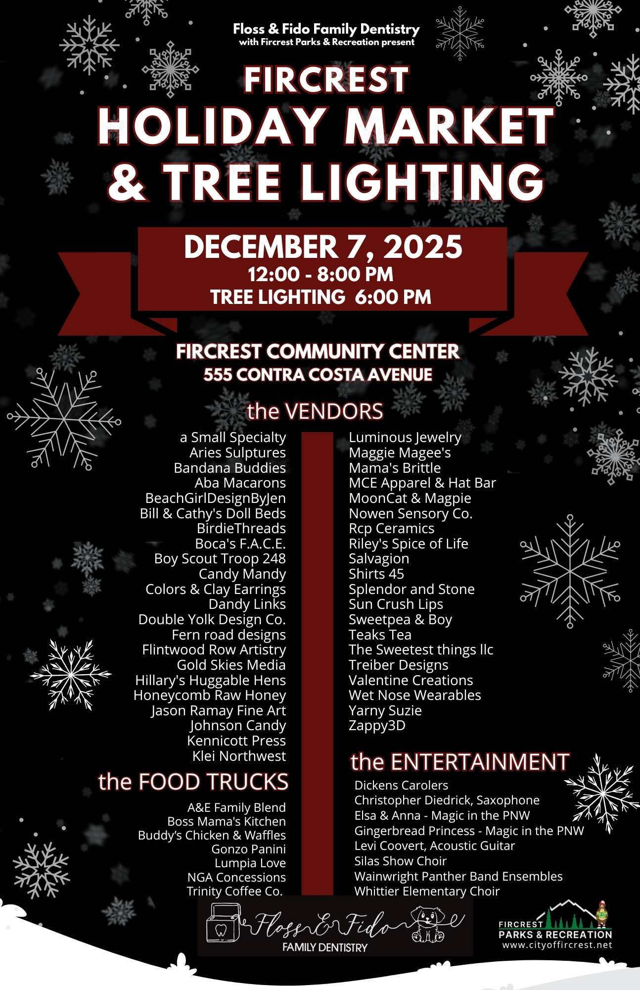 2025 Tree lighting and holiday market poster with vendors