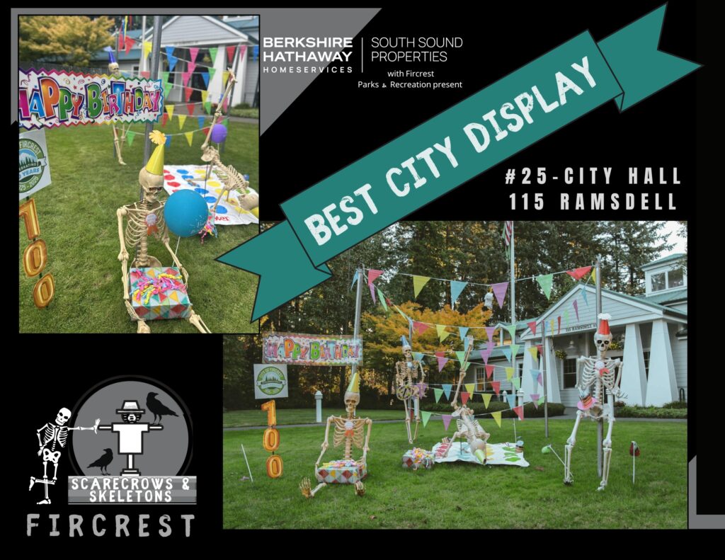 We’re excited to announce the winners of the 2025 Scarecrows & Skeletons of Fircrest Display Contest! Please help us congratulate …..
