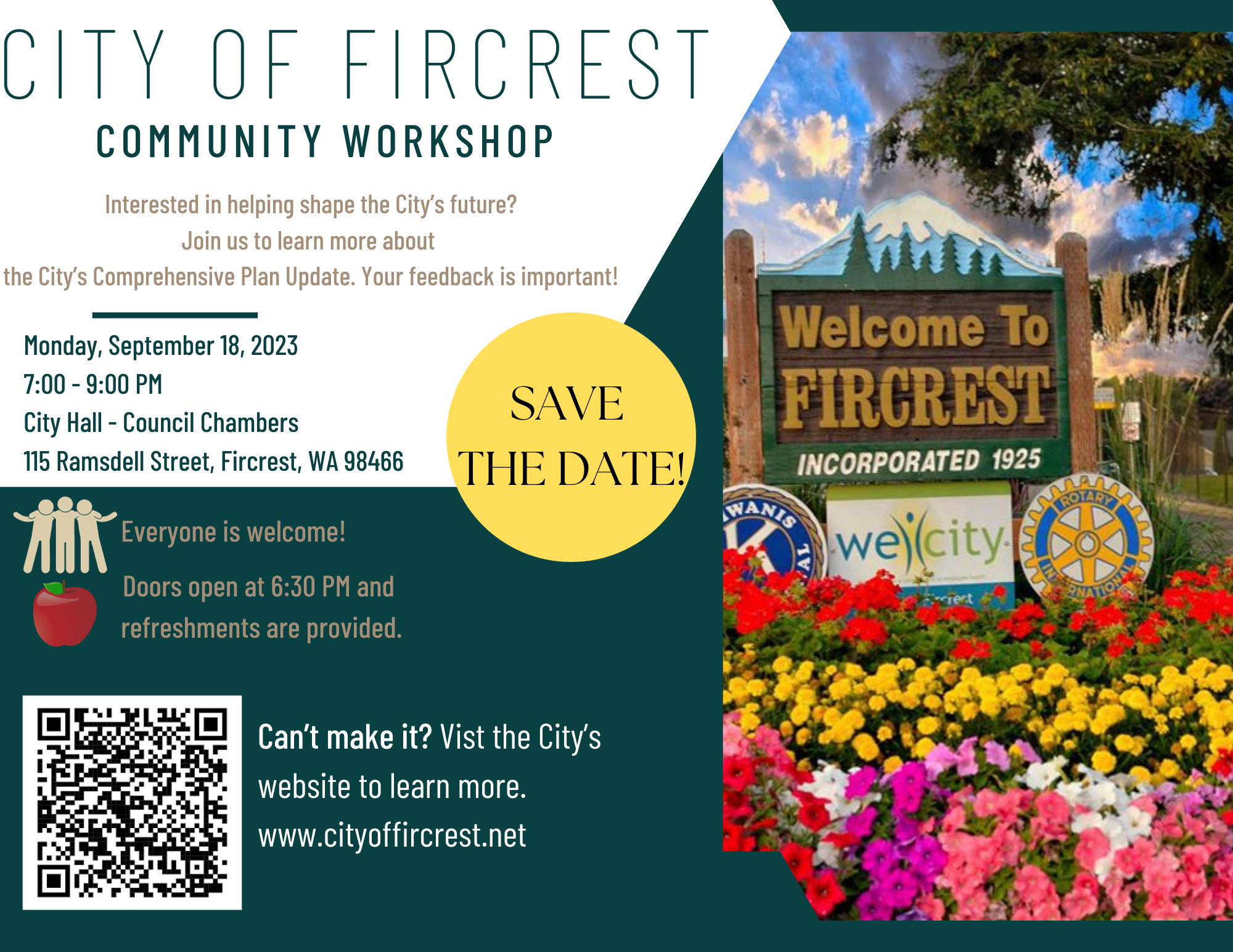 Please join us for a Council Special Meeting and Community Open House to review where we are on our Comprehensive Plan Update and Next Steps going forward: