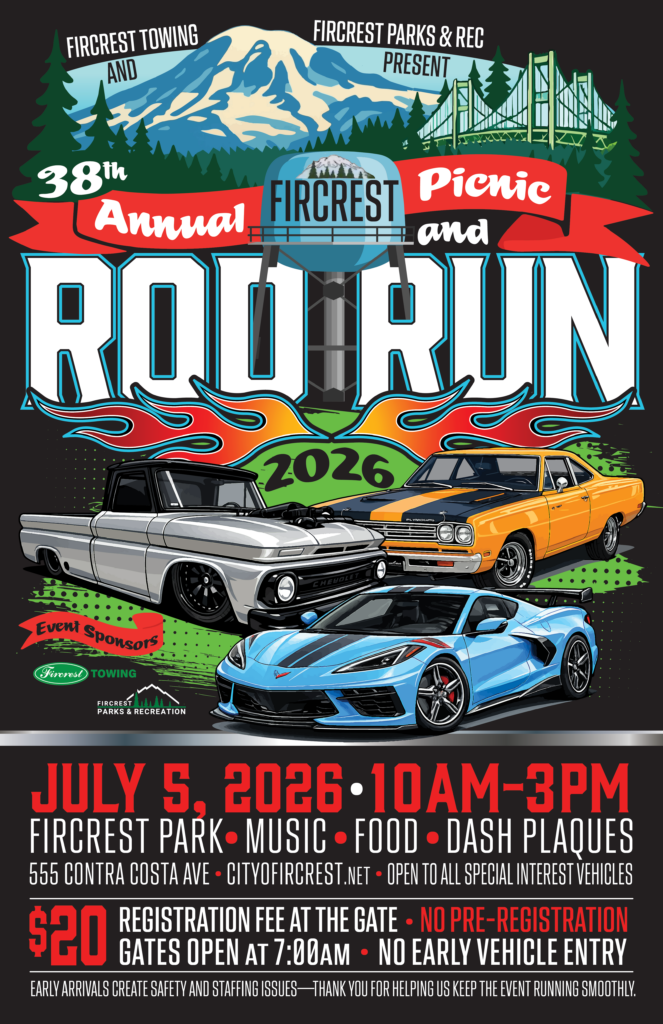 Next up: the 2024 Fircrest Rod Run on Sunday, July 7th.