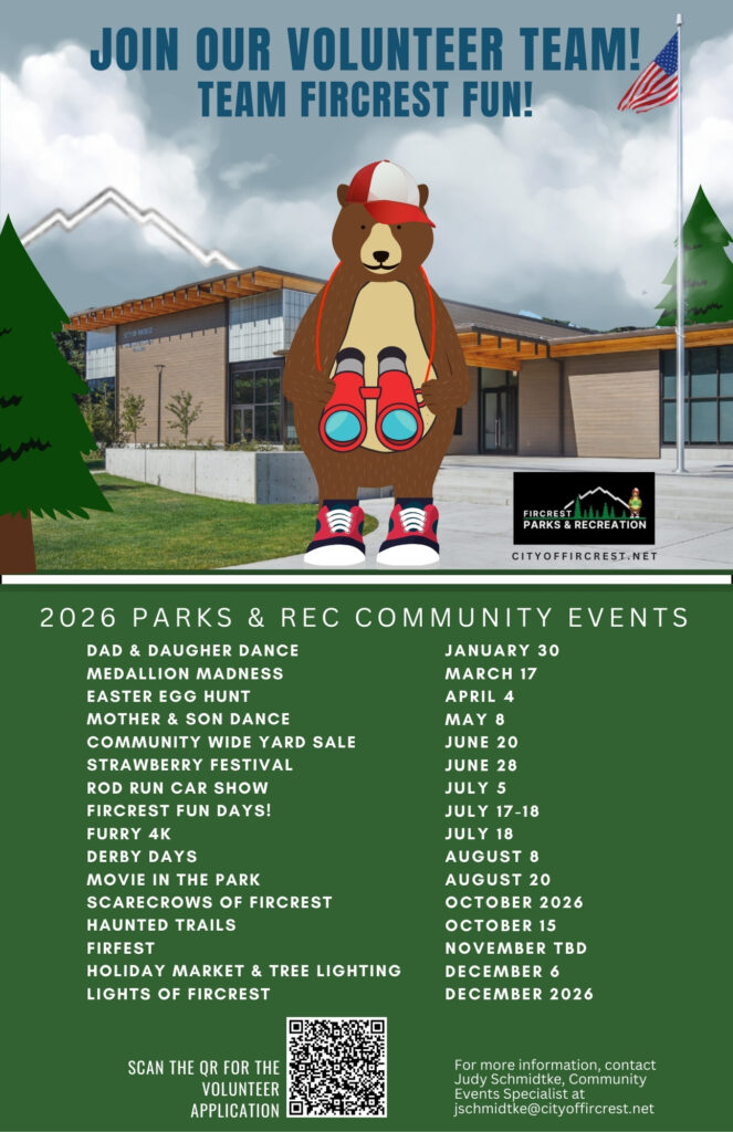 Follow this link to sign up as a volunteer: https://form.jotform.com/FircrestParksandRecreation/2026-volunteer-application