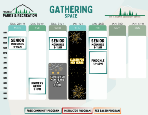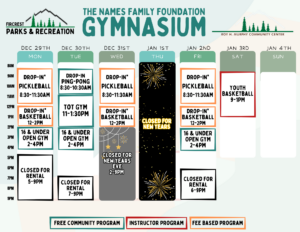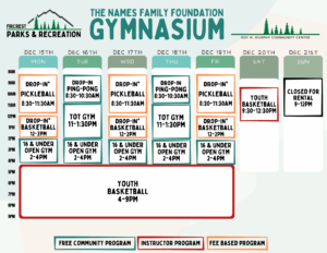 Schedules will be added here and on our RecDesk Site as they are added to the Community Center!