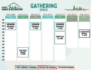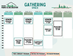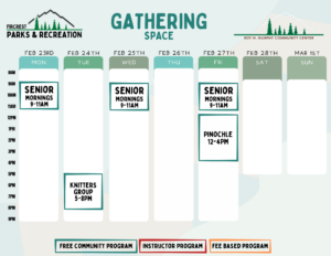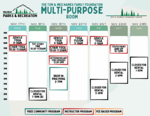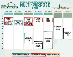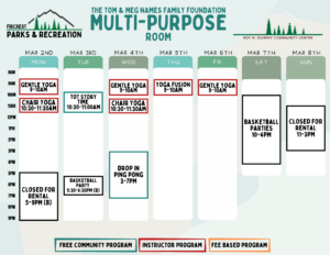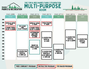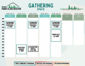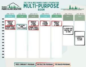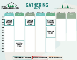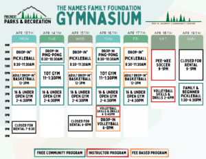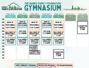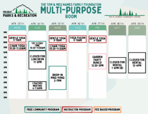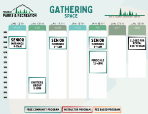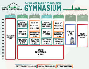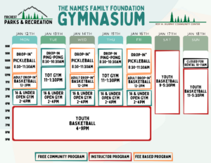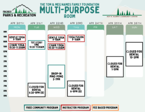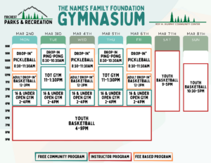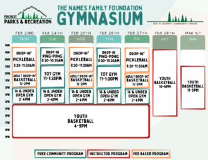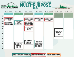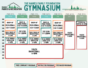 Schedules will be added here and on our RecDesk Site as they are added to the Community Center!