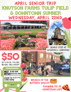 April Senior Trip – Knutson Farms Tulip Field & Downtown Sumner