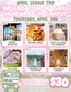 April Senior Trip – Walking Tour of Burke Museum & UW Campus